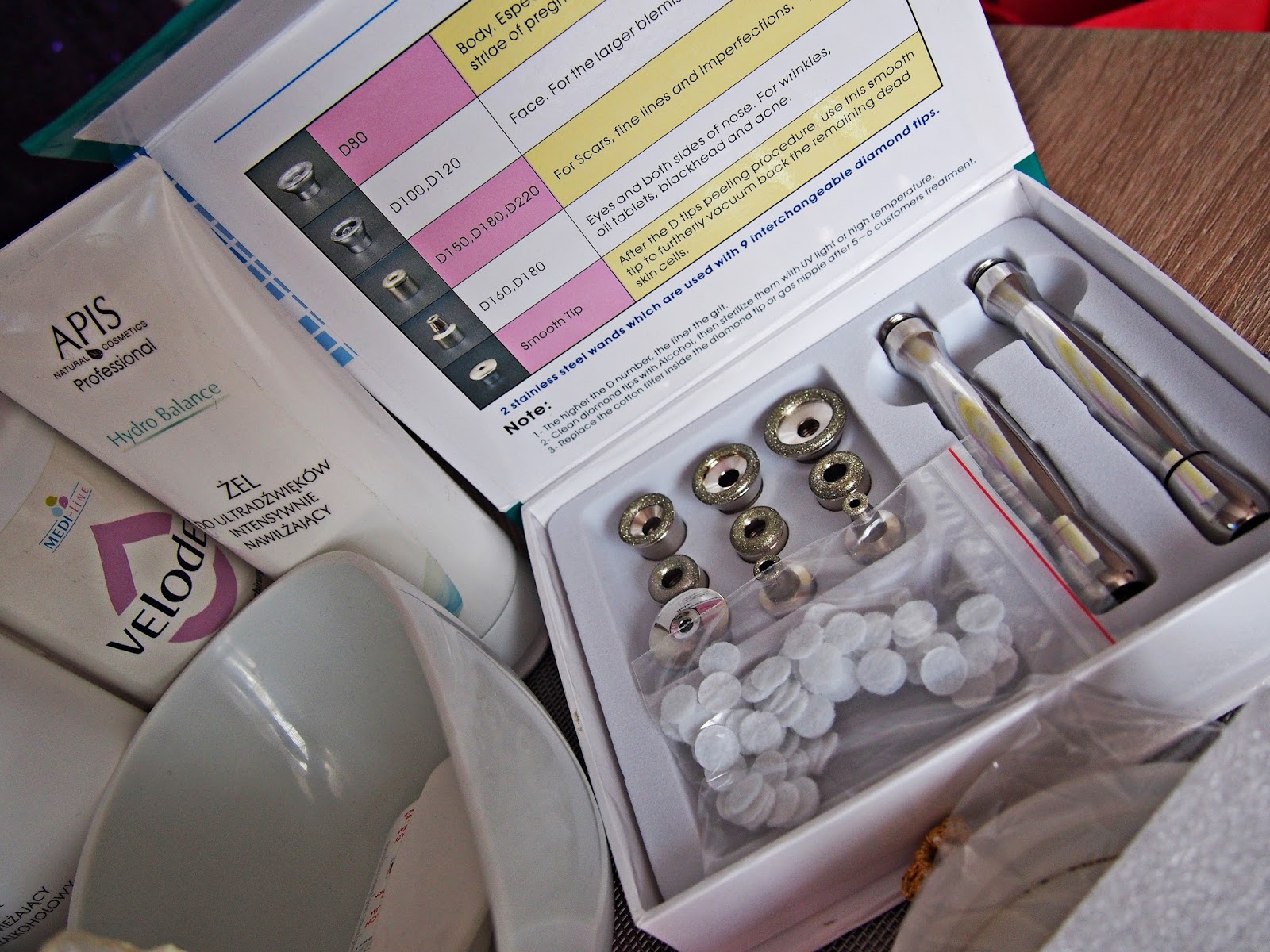 Dwa i pół miesiąca po porodzie udało nam się zrobić pierwszy zabieg mikrodermabrazji. Siostra w końcu znalazła chwile i przyjechała do mnie z całym sprzętem i wzięła mnie w swoje obroty. Jak wspominałam w poprzednim poście, po ciąży zrobiły mi się niestety rozstępy. Na szczęście pojawiły się tylko na boczkach, ale jednak jest ich kilka i są dosyć widoczne. Podobno dobrym sposobem na pozbycie się takich pamiątek po ciąży jest właśnie mikrodermabrazja diamentowa.