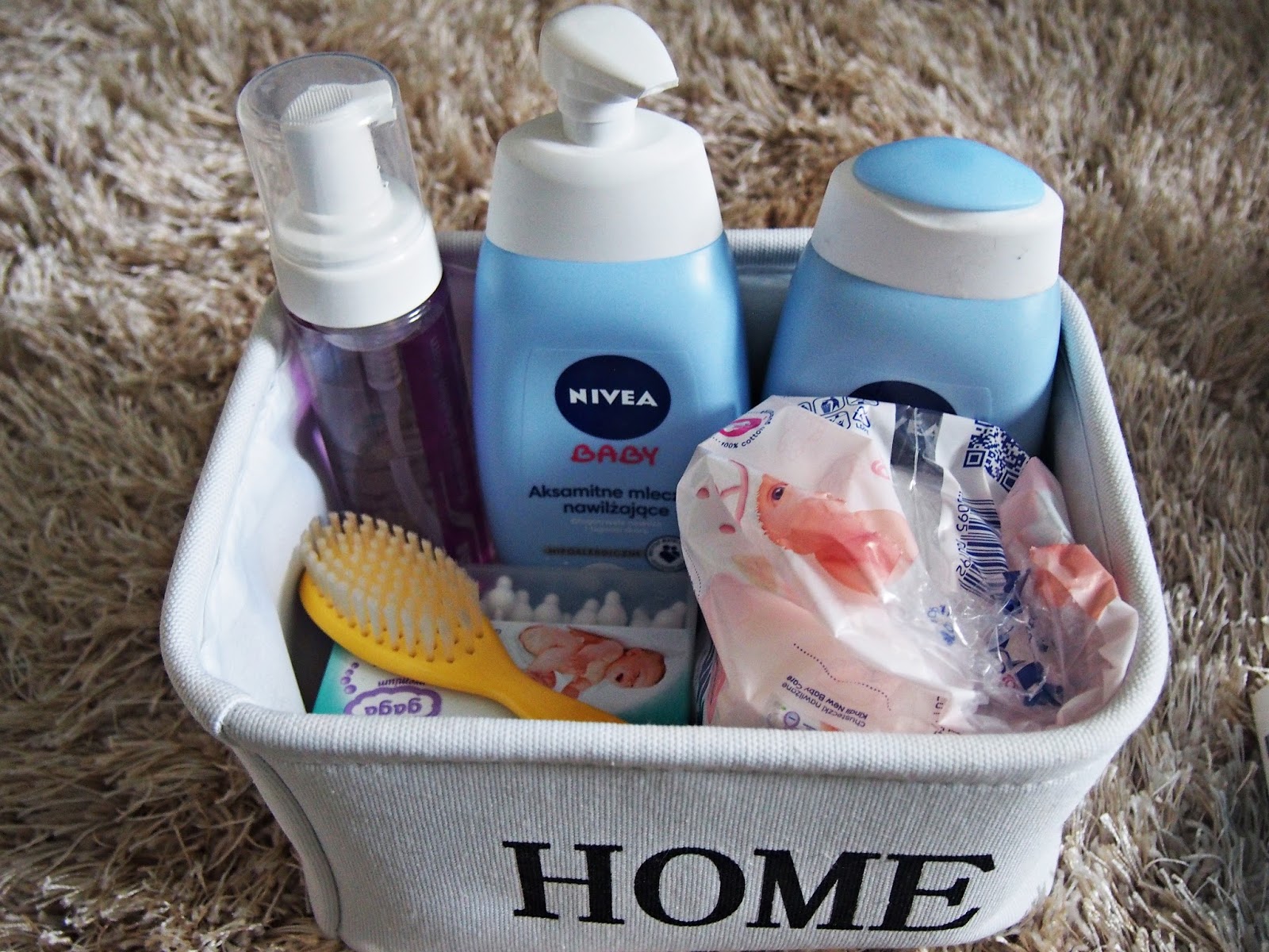 3. PRZYBORY DO KĄPIELI. Podstawa to płyn do kąpieli i balsam do ciałka. Niektóre mamy tylko płukają dzieciątko w wodzie z płynem do kąpieli. Ze szpitala udało mi się również zdobyć piankę do mycia całego ciałka niemowlaczka, której używają pielęgniarki do mycia wszystkich noworodków. Oczywiście wcześniej zakupiłam płyn johnson&johnson 3w1 do kąpieli, ale używać go będę najwyżej później. Jest bardzo wygodny bo można stosować go jako mydełko, szampon i płyn do kąpieli. Nie wszystkie produkty są zalecane do stosowania od 1 dnia życia, dlatego trzeba czytać etykietki. Niektóre należy używać dopiero od 1 miesiąca. Balsam do ciałka oraz płyn do kąpieli kupiłam z serii Nivea i jestem z nich zadowolona. Oliwka nie była moim priorytetem, ale do masażu niemowlaczka jest idealna, poza tym jej zapach przypomina mi słońce, plażę i morze. Warto również wyposażyć się w grzebyczek i mięciutką szczotkę do włosków niemowlaka, ponieważ masowanie nimi główki wzmacnia cebulki włosów. Nie zapomnijmy o ręczniku dla dziecka!
