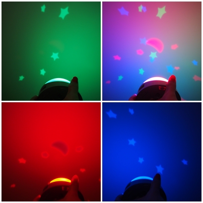 Przyznam szczerze że sama mam w domu dwa. Nie dlatego, że kupowałam na zaś. Po prostu jeden dostałam przy zakupach w Yves Rocher, a drugi Ola dostała w prezencie. Pierwszy mimo swojej prostoty jest na prawdę fajny. Świeci na różne kolory i miga światełkami. Taki projektor świetnie sprawdzi się dla większych dzieciaków. Dostępne są również takie, które mają dodatkowo wgrane melodie.