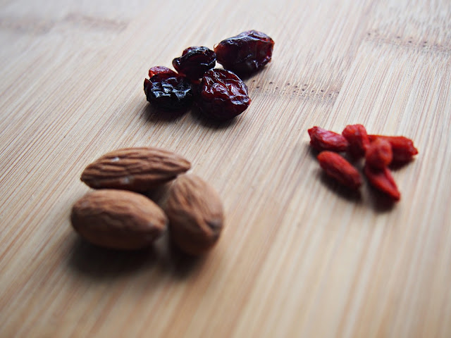 Codziennie rano jem trzy rzeczy, które oprócz tego, że ogólnie pozytywnie wpływają na mój organizm – posiadają ‘magiczne’ właściwości o których również nie omieszkam napomknąć. Z pewnością każda z was słyszała już o antyrakowym działaniu Jagód Goji, o żurawinie rewelacyjnie wpływającej na układ moczowy (i nie tylko!) oraz o pysznych migdałach wspomagających naszą urodę. To właśnie te trzy produkty powinny znaleźć się codziennie na naszym talerzu… lub w garści 😉